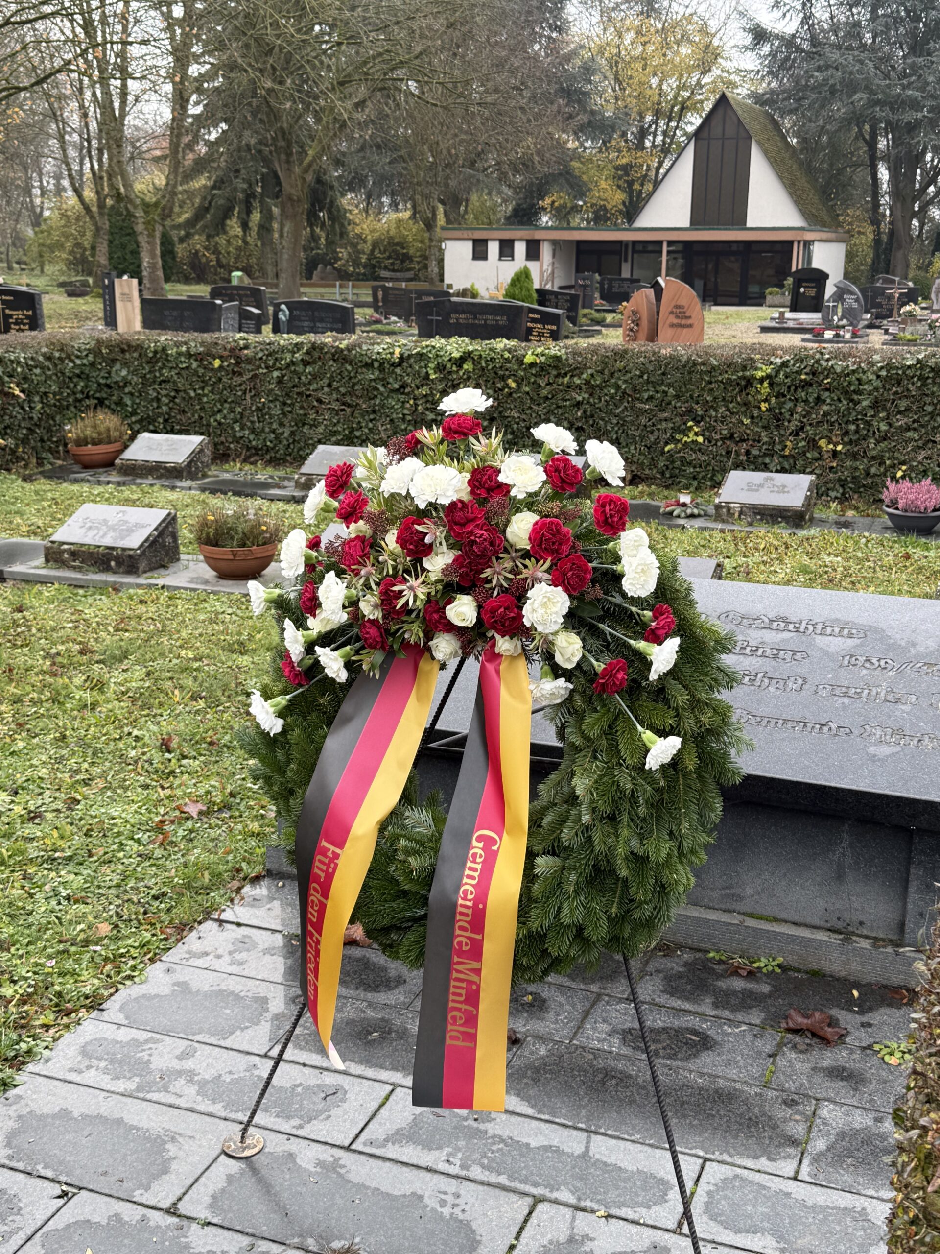Gemeinsam mit Pastoralreferentin Annika Bär und dem Ortsbürgermeister Martin Volz wurde am Sonntag den toten der beiden Weltkriegen auf dem Friedhof in Minfeld gedacht. Zu Ehren dieser wurde ein Kranz am Soldatenfriedhof aufgestellt. Vielen Dank dem Männer- und Frauenchor, der die musikalische Umrahmung übernahm.